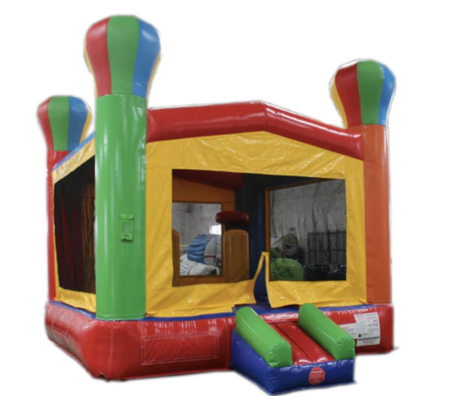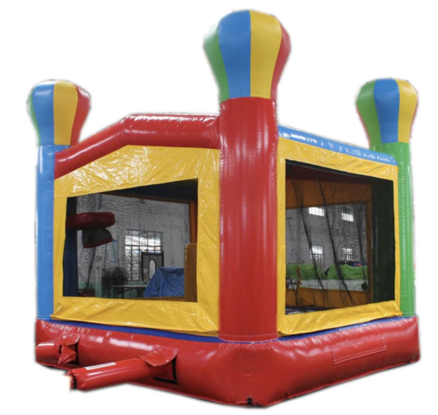 Our Bounce House is a multicolored fun house! Featuring a basketball hoop inside to complement the ample bouncing space offering a great old time for your little ones!