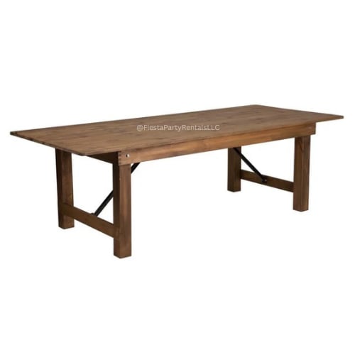 Our rustic farm tables lend a rustic aesthetic view when left uncovered, and also work great decorated with table cloths and skirting. These tables can comfortably seat 8 to 10 individuals.