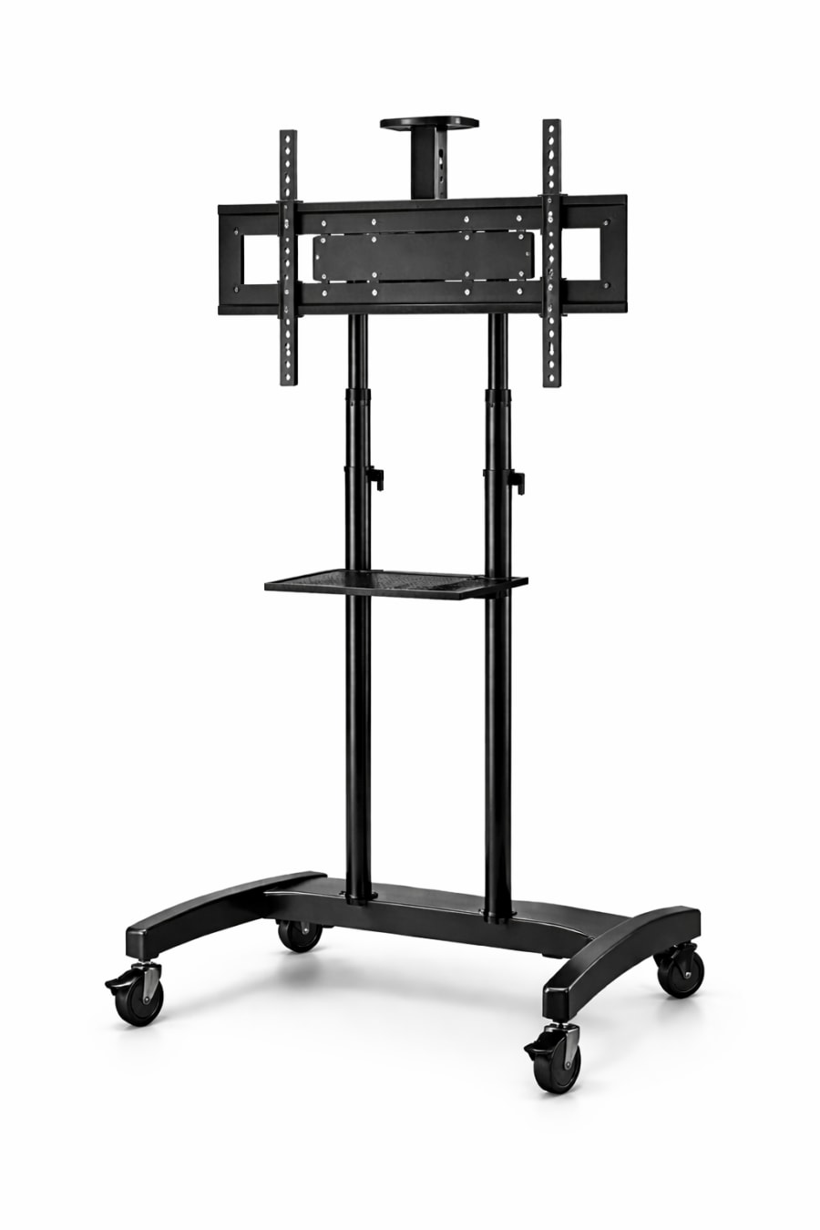 Our mobile TV stands with shelves offer a versatile, portable viewing with storage featuring height-adjustable mounts with locking wheels. These mobile stands are perfect for any corporate conferences or community events.