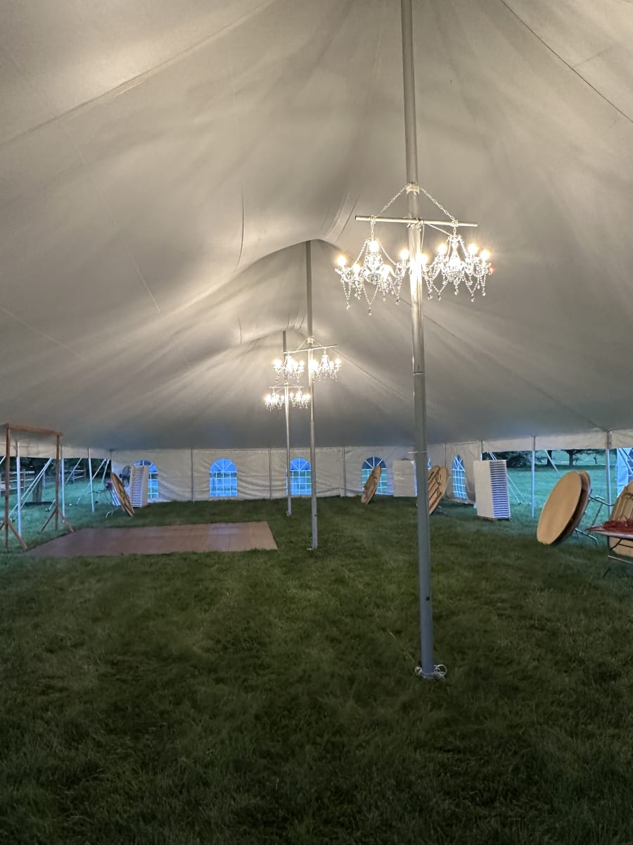 Looking to elevate your tent lighting? The gorgeous look of a crystal chandelier can brighten up any space while adding an elegant touch.