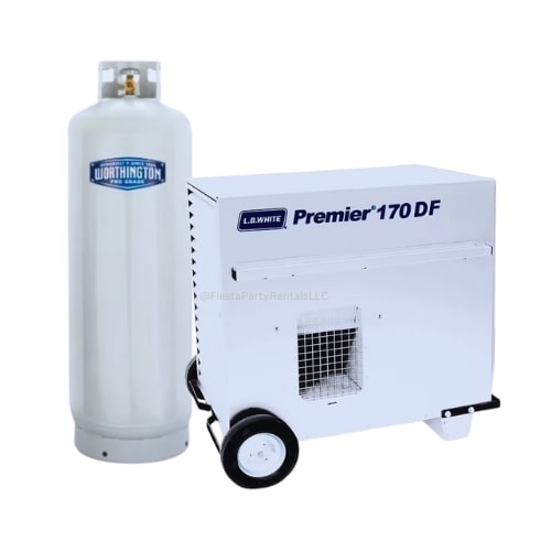 This heater is designed to provide heating or simple air circulation. It is very versatile, with an enclosed flame and low noise level. Great for construction sites, tents, events, or any other setting where portable heating and ventilation are required. This tent heater is ideal for larger tent sizes (ex. 20x30, 20x40, 30x60).