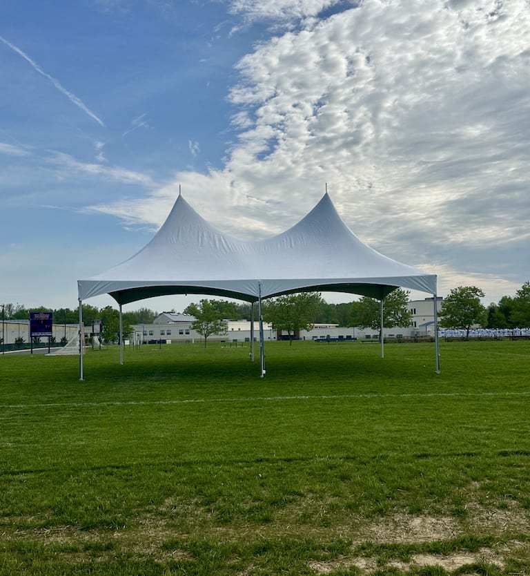 Our 20x30 frame tent is ideal if you will be planning a larger event. You can host an event for 60-70 guests with rectangular tables or 48 guests with 60" round tables.